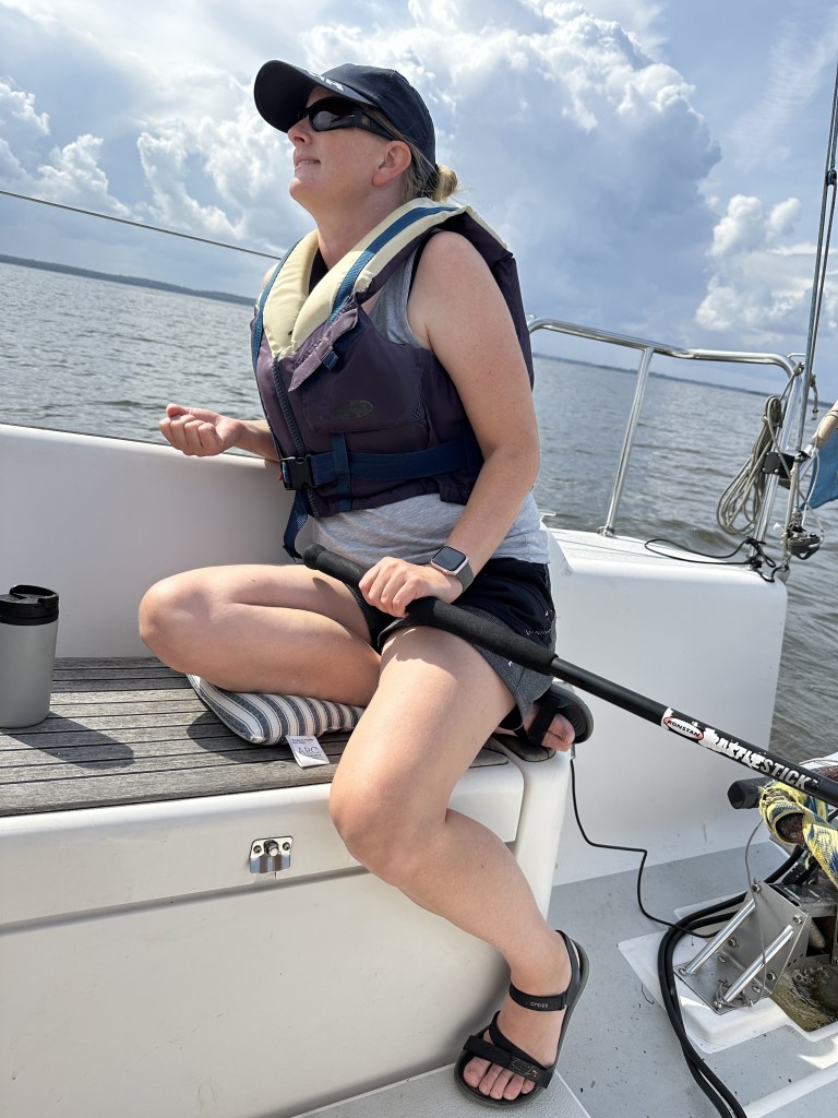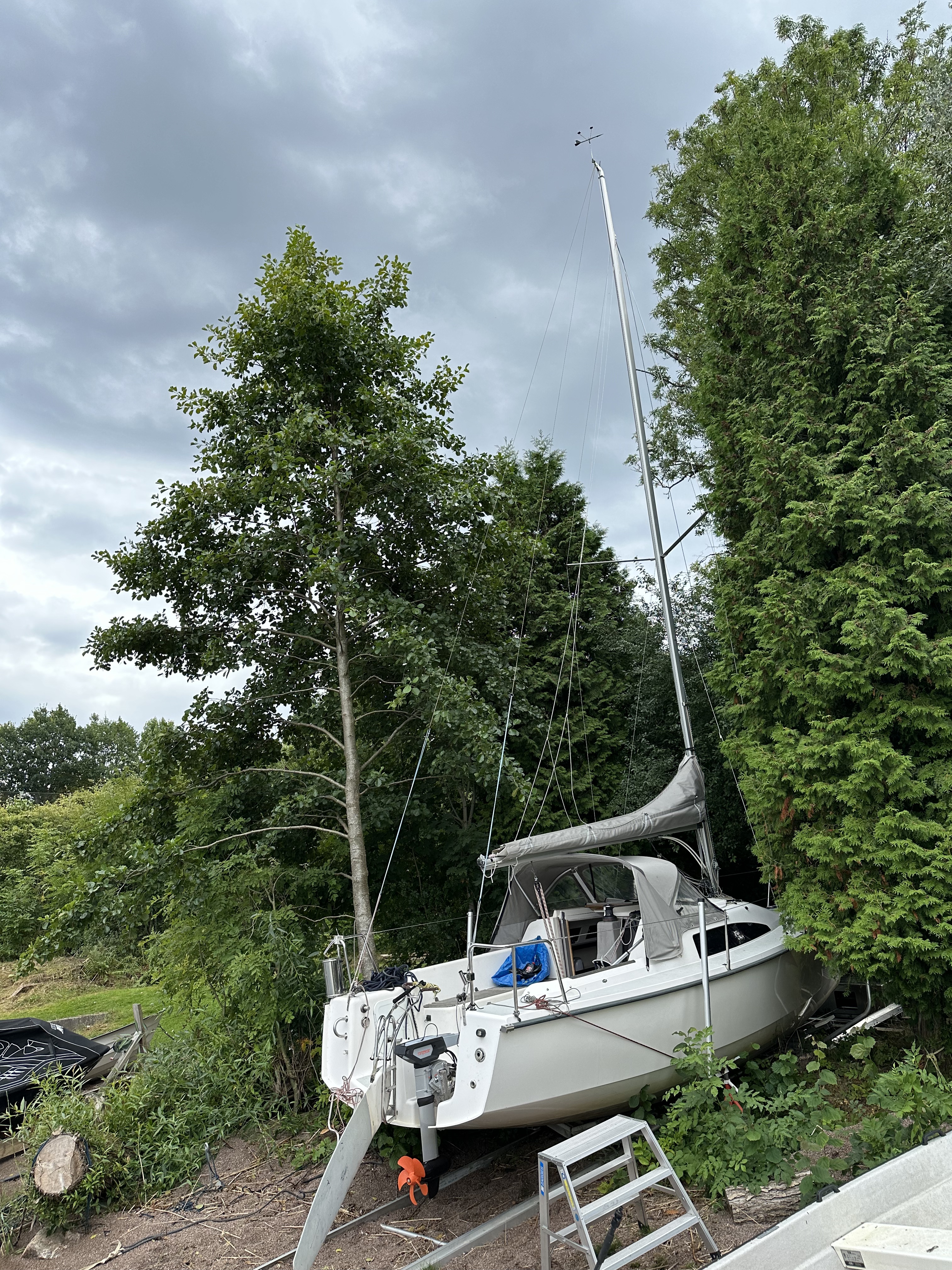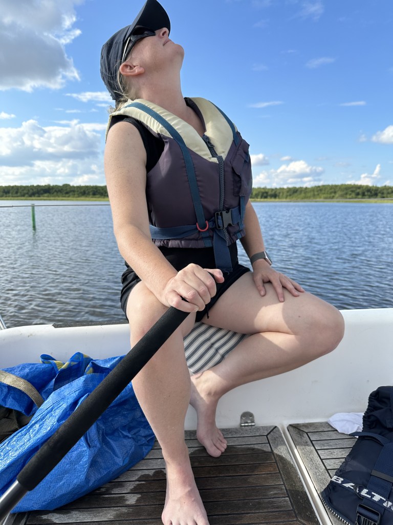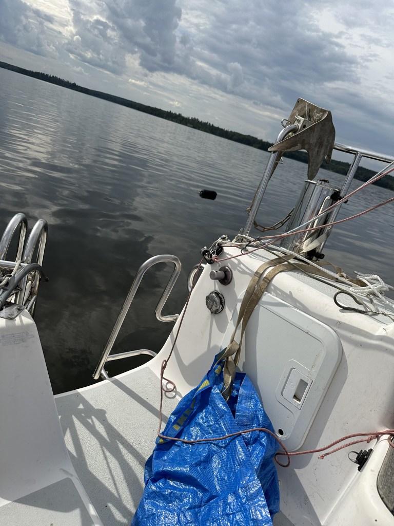 Vi konstaterar att vår lilla båt, en Fabola Campus 7.4 som vi haft sedan 2022, erbjuder så kallad glamping. Det är helt klart campingkänsla när man måste krypa för att komma in i förpiken och varje gång man behöver en sak så måste man flytta på något annat för att komma åt den.