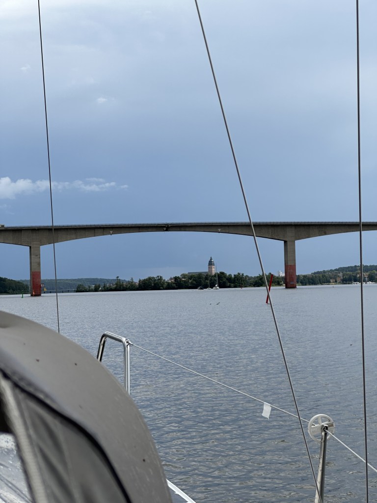 Mälaren lockar även långväga gäster, en tyskflaggad båt gick igenom Tosteröbron samtidigt som vi.