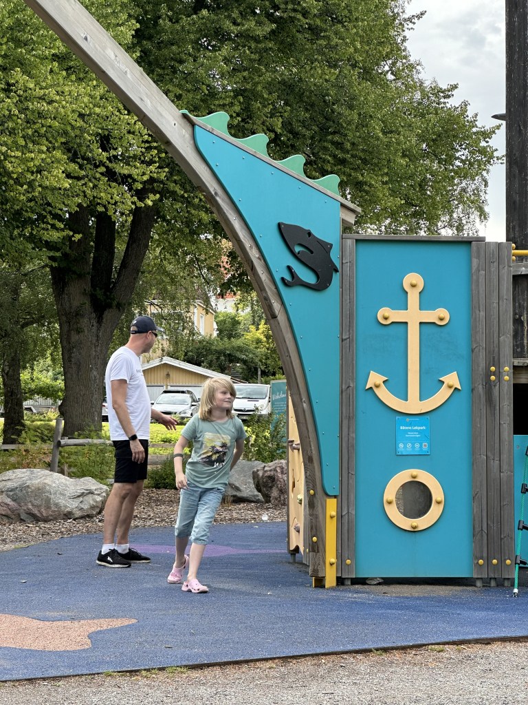 Lagom tills vi gick under Strängnäsbron slutade det regna och vi fick en fin eftermiddag/kväll i Strängnäs gästhamn med god mat, mjukglass till Albin och lek i den fina lekparken i Västerviken. Den här natten sov vi gott, även om vi fick lyssna till epa-dunk när vi lagt oss! Så kan det gå när bryggan ligger precis nedanför bästa cruisingstråket.