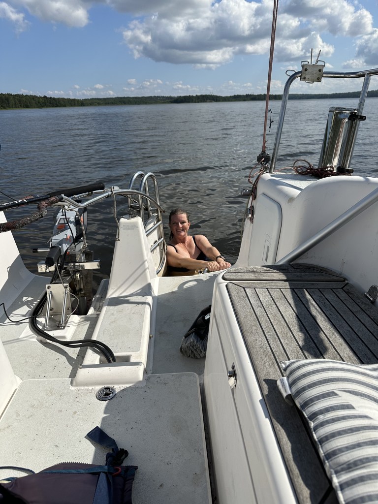 Ljuvligt bad från båten, mittemot Askholmen.