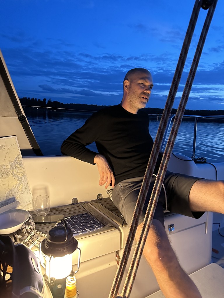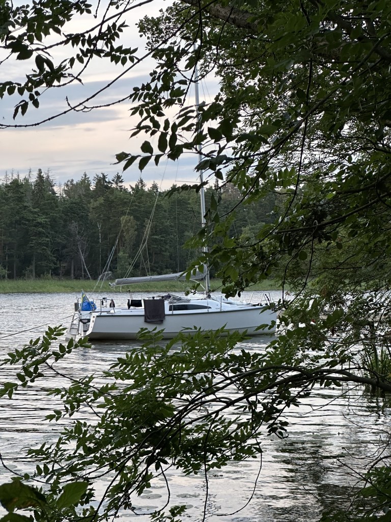 Nu blev det lite velande kring vart i skulle ta vägen. Sundbyholm? Någon av klubbholmarna kring Ridön? Fagerön? Någon vik att ligga på svaj i?