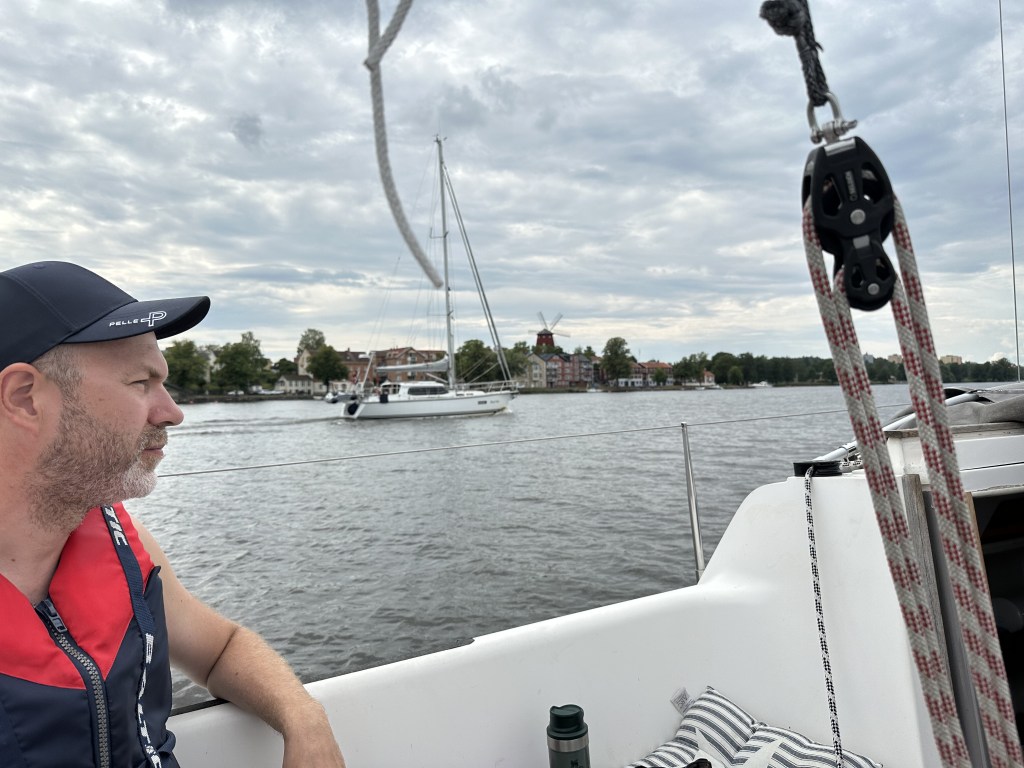 På väg ut från hamnen hejade vi på klubbkompisarna Anna och Niklas som kom in precis när vi lämnade. Vi fixade vår första broöppning med segelbåten Lova och tog oss igenom Tosteröbron ut på Ulvhällsfjärden, där jag har seglat många Sörmlandscuper i optimist och E-jolle på 1990-talet.